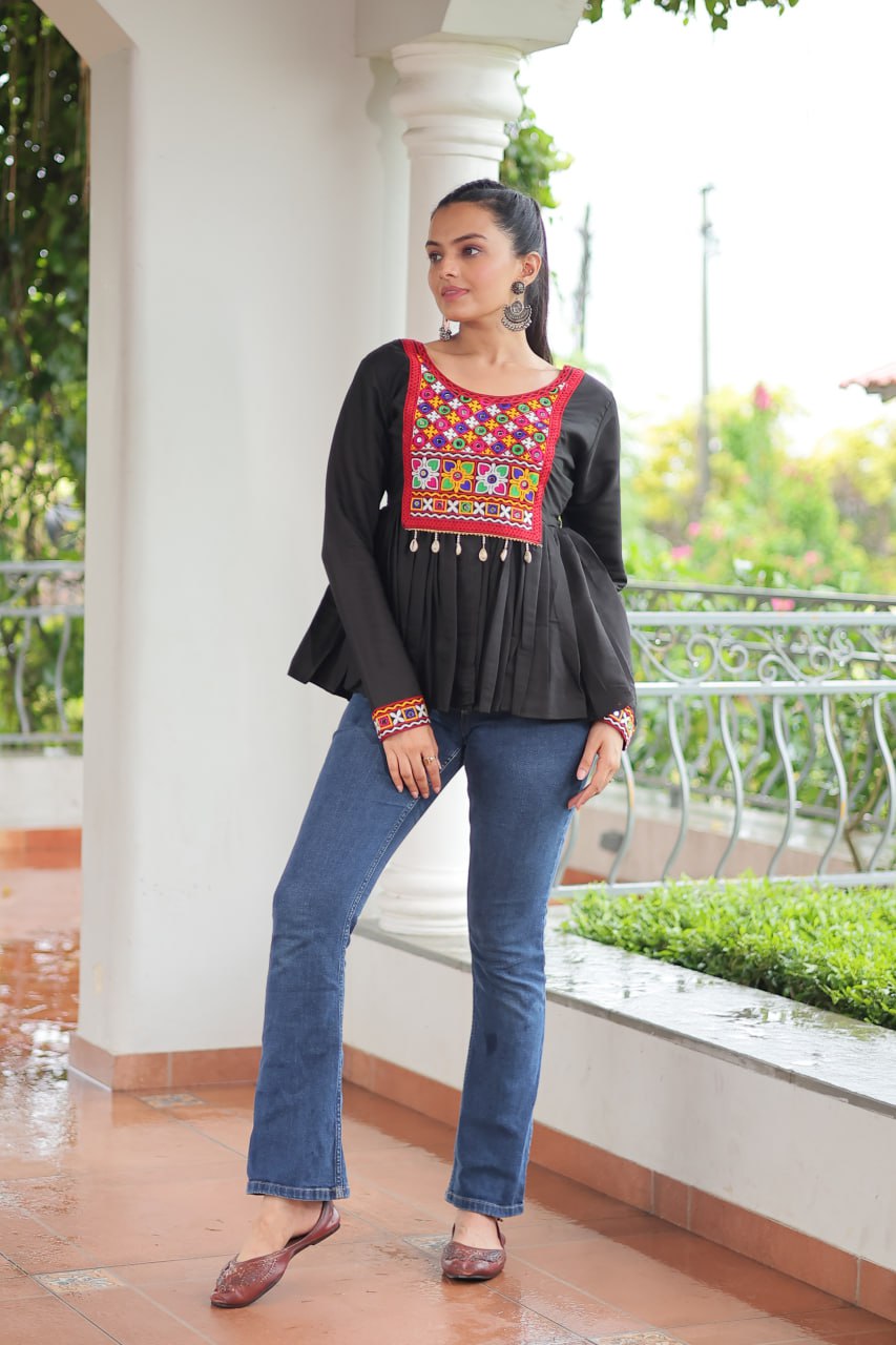 Special Design Black Color Kutchi Gamthi Embroidery Navratri Top