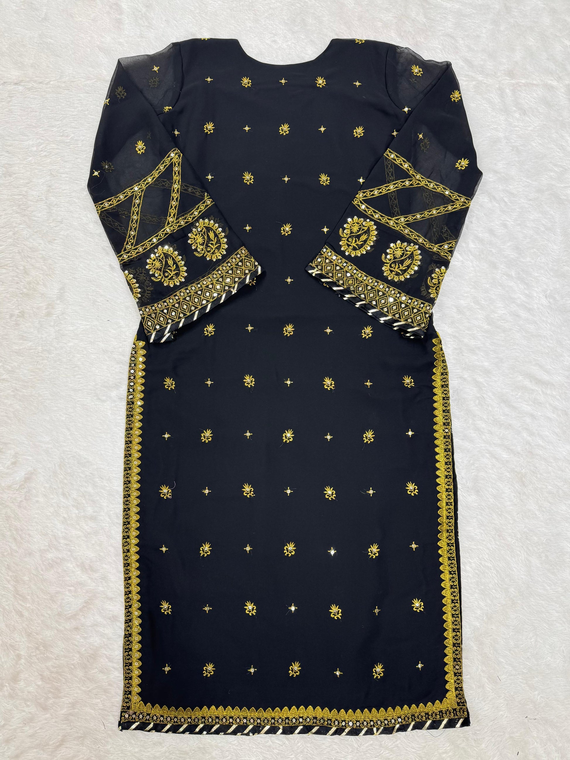 Stunning Black Color Faux Georgette And Thread With Sequence Work Beautiful Salwar Suit