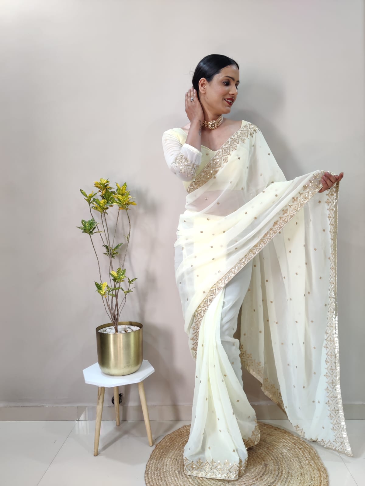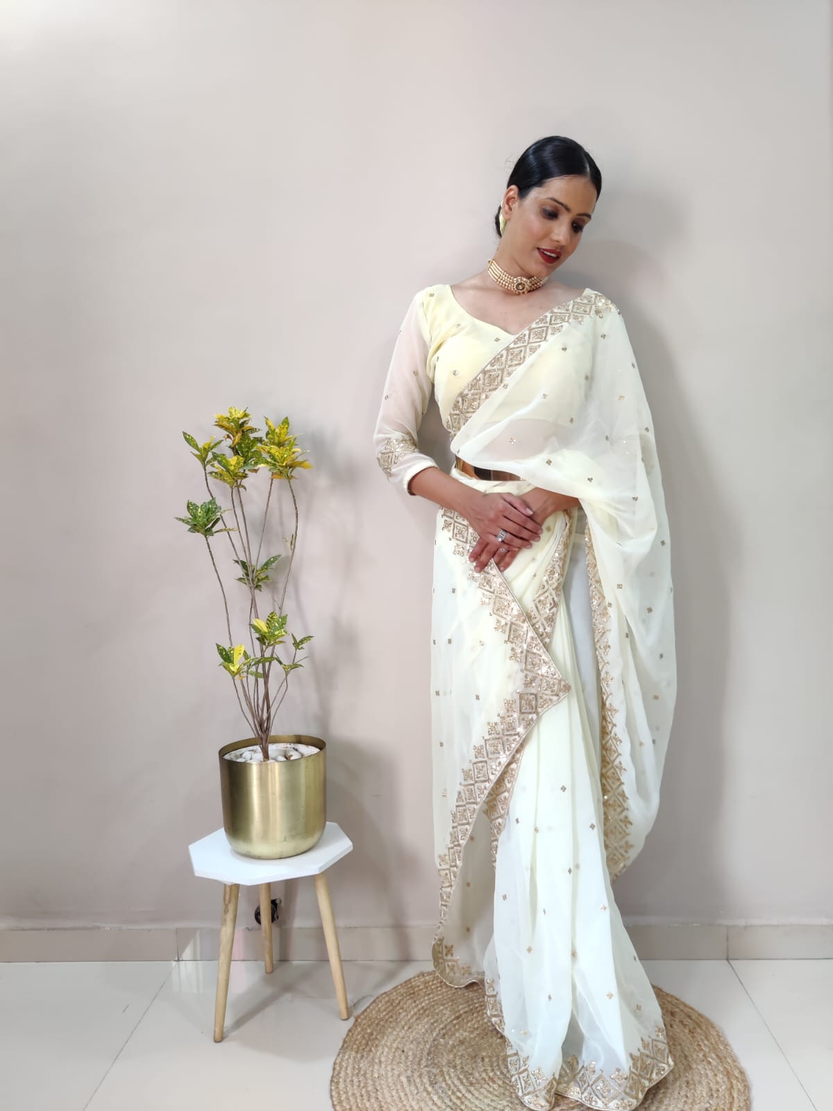 Saree Work | Embellished With Beautiful Multi And Sequins Work ( C-pallu Ready To Wear Saree ) |