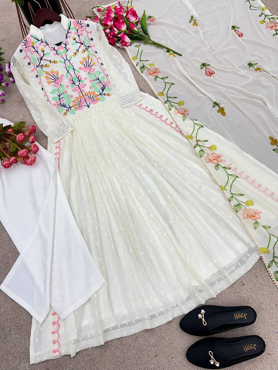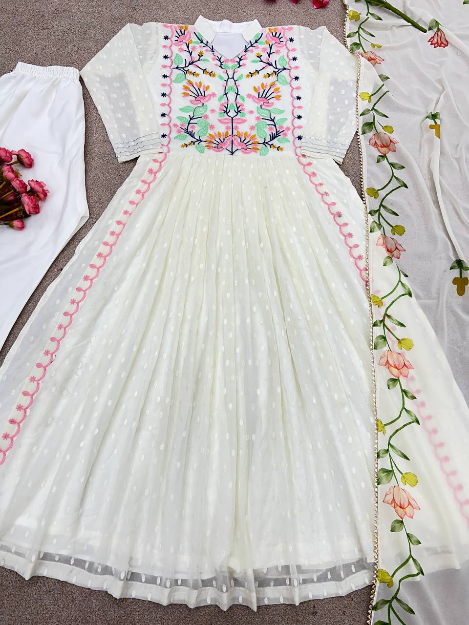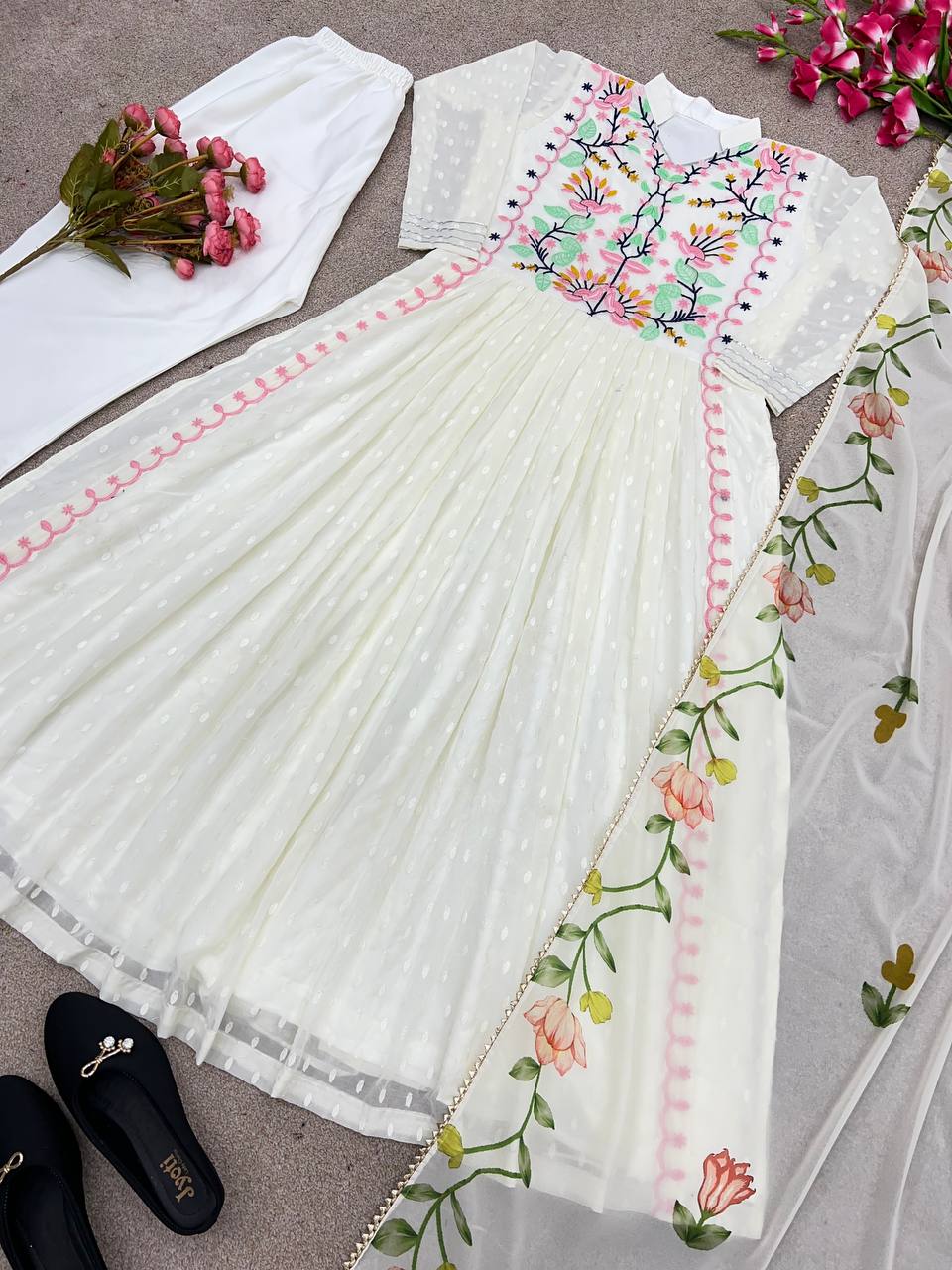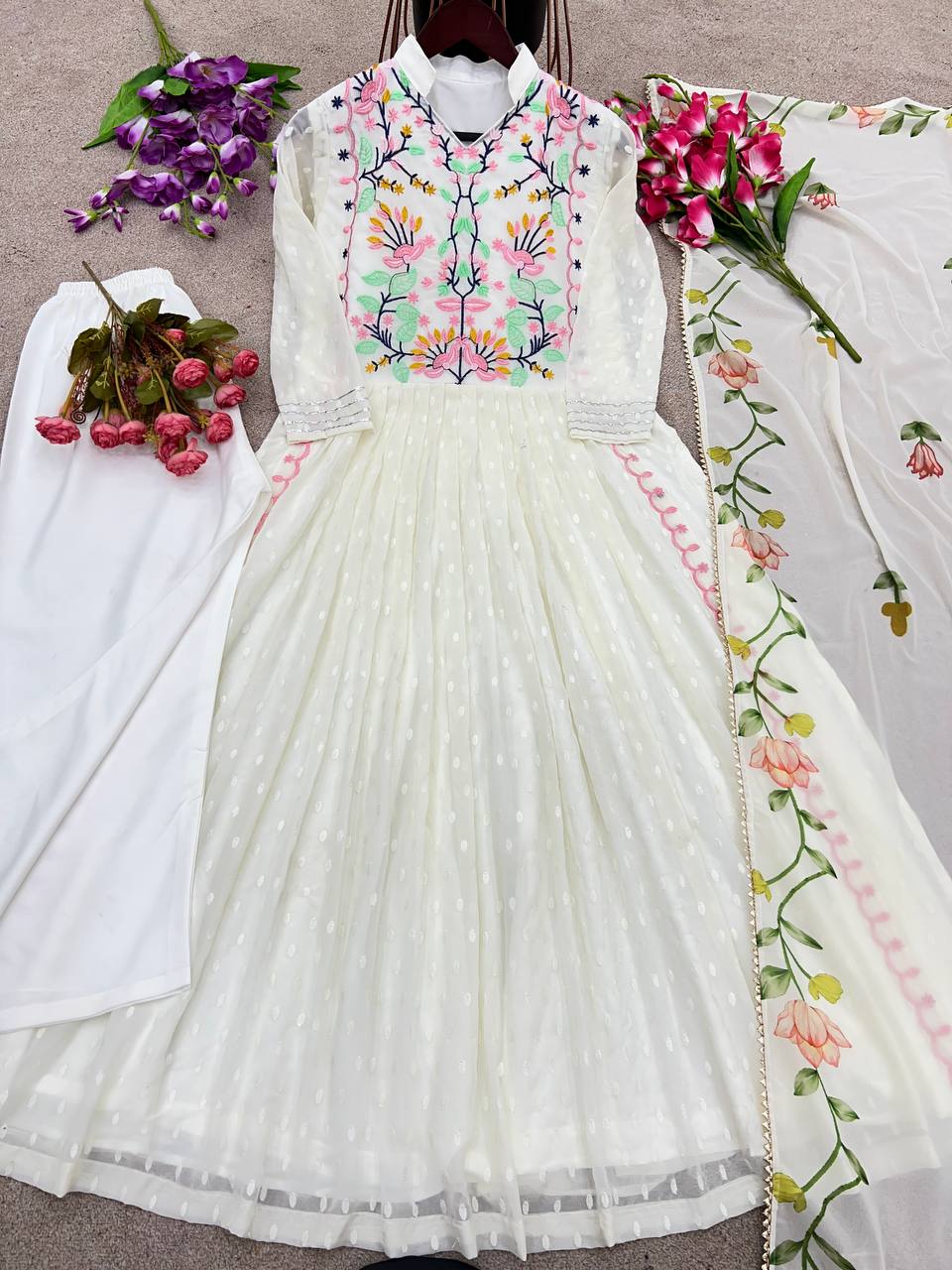 | Work | Heavy Embroidery Malty Thread Work Naira Cut Top With Full Sleeve |