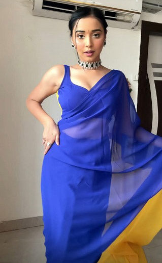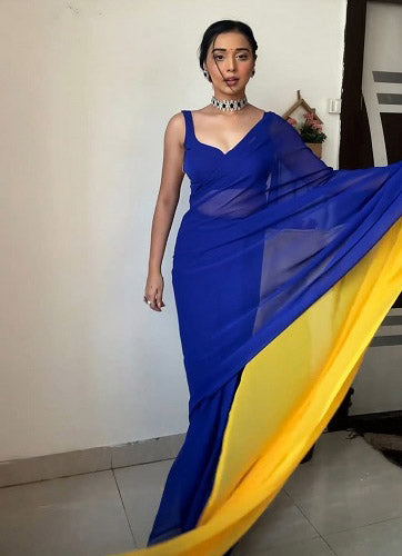 Superhit Blue With Yellow Double Color Ready To Wear Saree