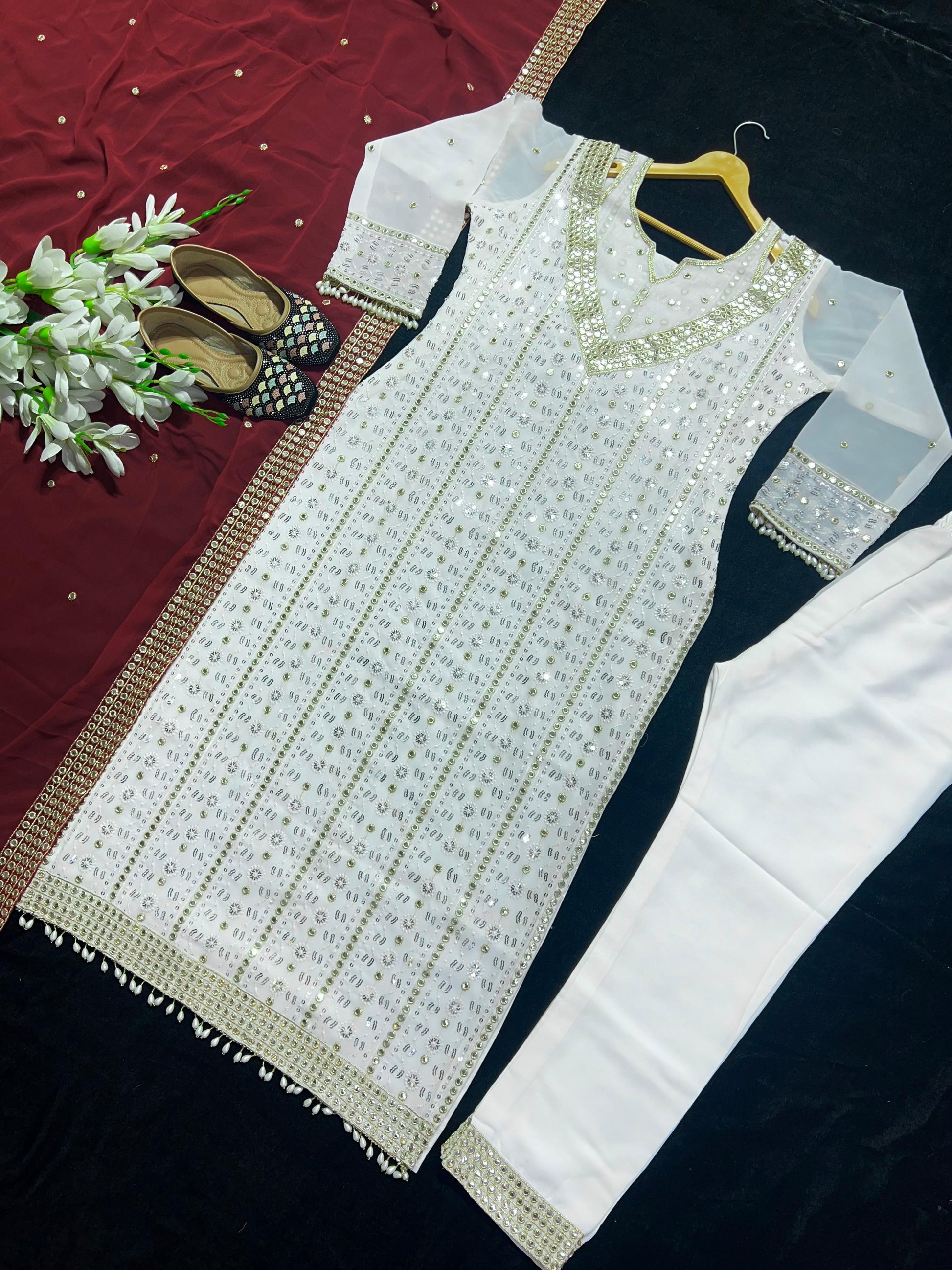 | Fabric | Heavy Faux Georgette Material With Heavy Embroidery 9mm Sequence Work With Four Side Latkan. |