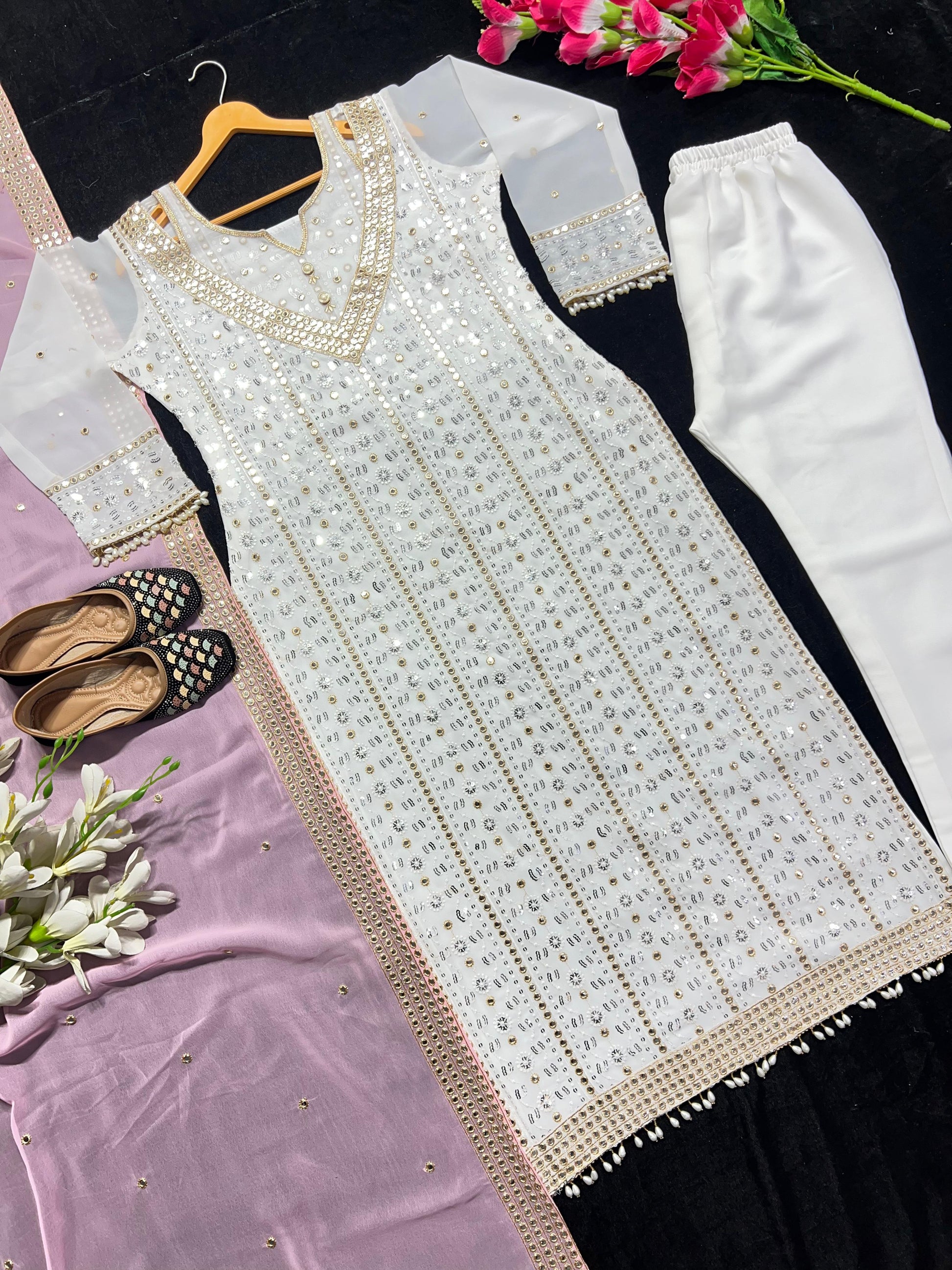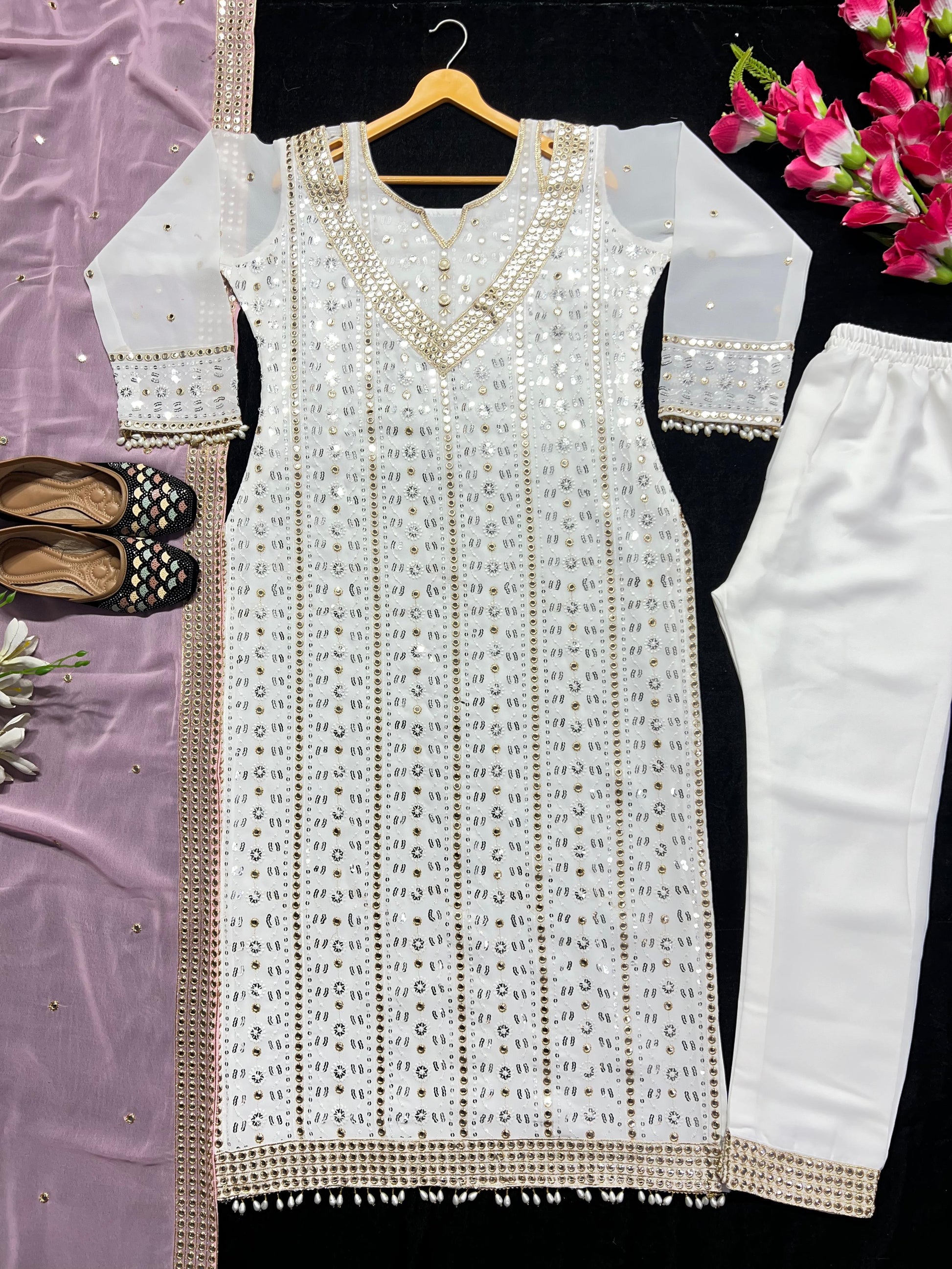 | Fabric | Heavy Faux Georgette Material With Heavy Embroidery 9mm Sequence Work With Four Side Latkan. |