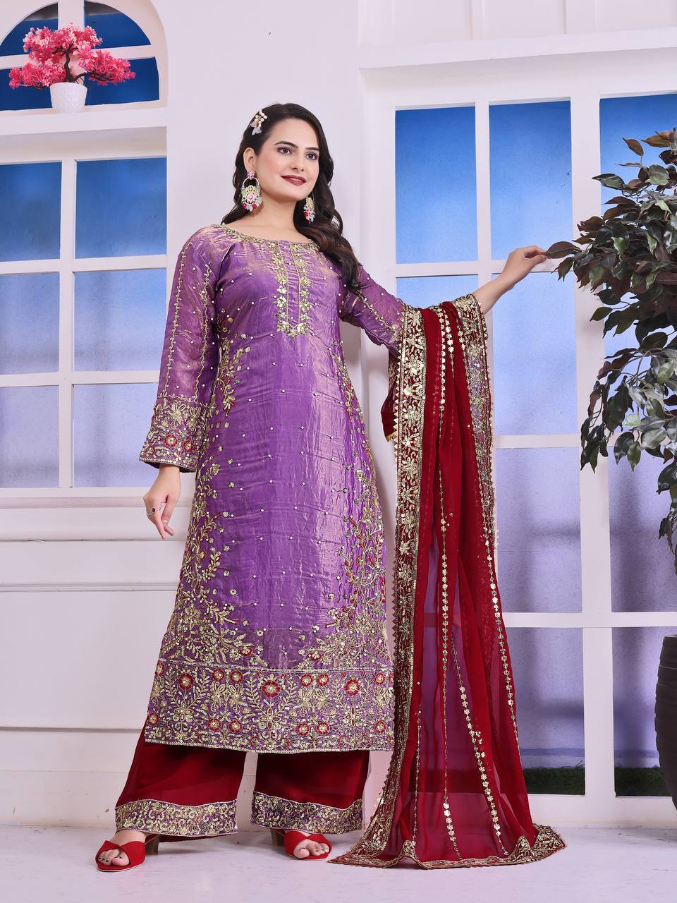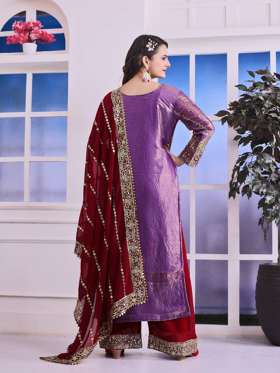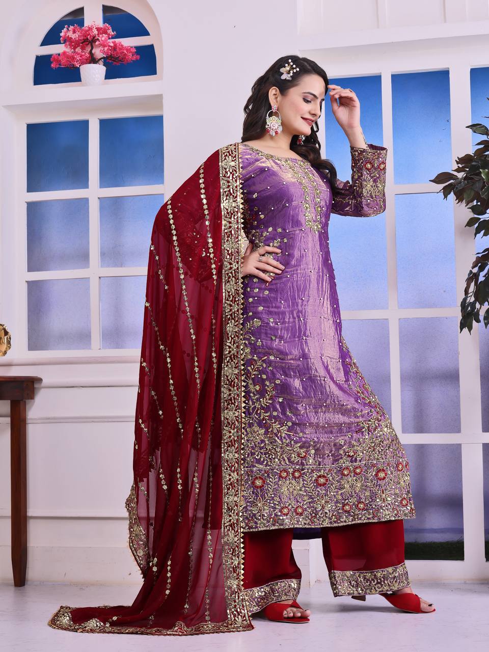 Terrific Purple Color Heavy Frendy Silk Beautiful Embroidery And Sequence Work Palazzo Suit