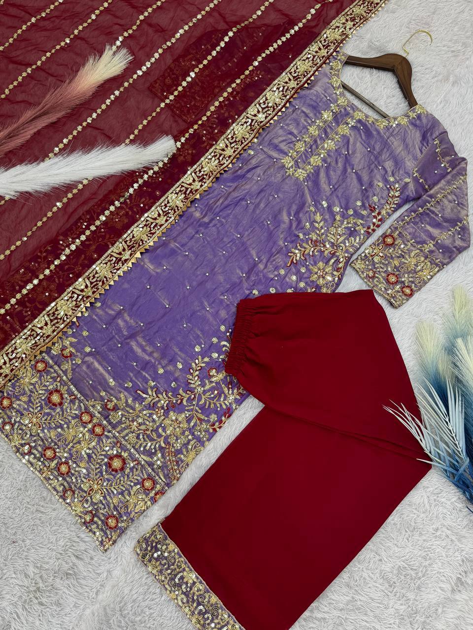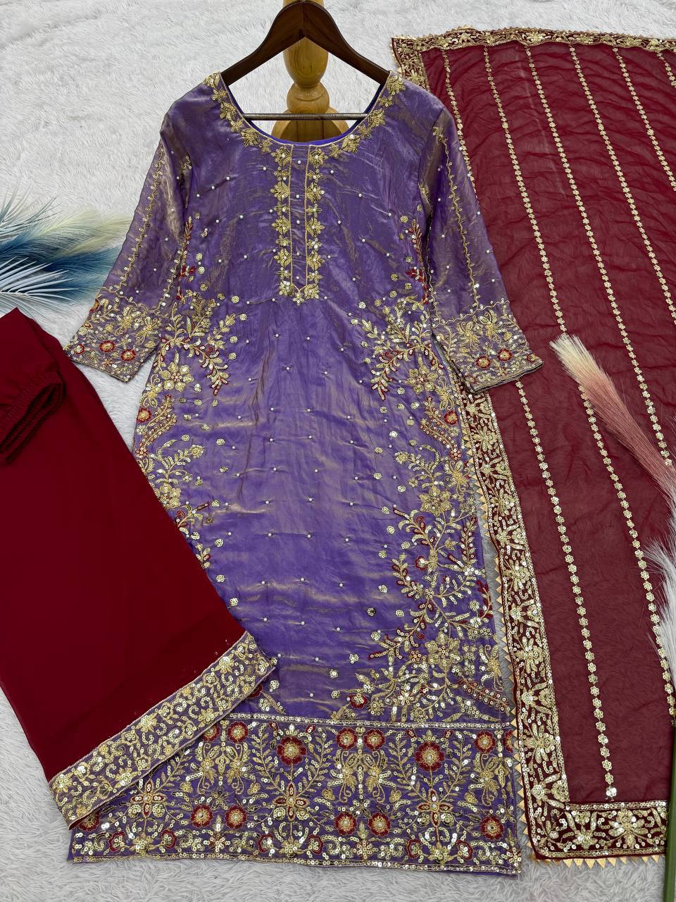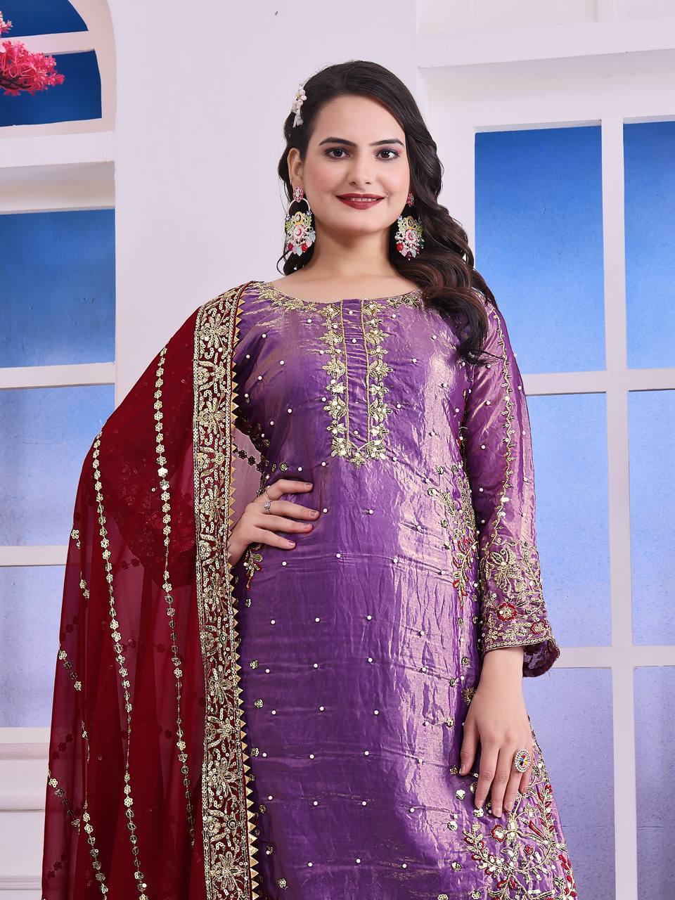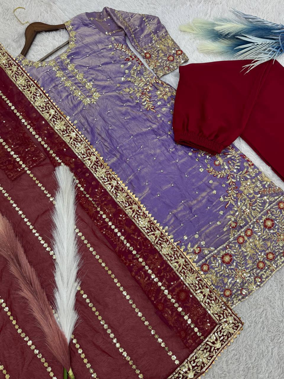 Terrific Purple Color Heavy Frendy Silk Beautiful Embroidery And Sequence Work Palazzo Suit