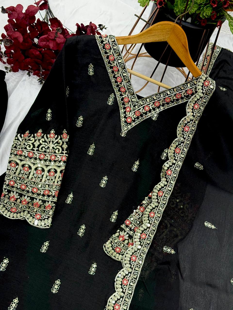 *Presenting New Chinon Silk With Heavy Embroidery Sequence Work Top-Plazo And Dupatta Set With Fully Stitched Ready To Wear Collection 🔥😍🥰*