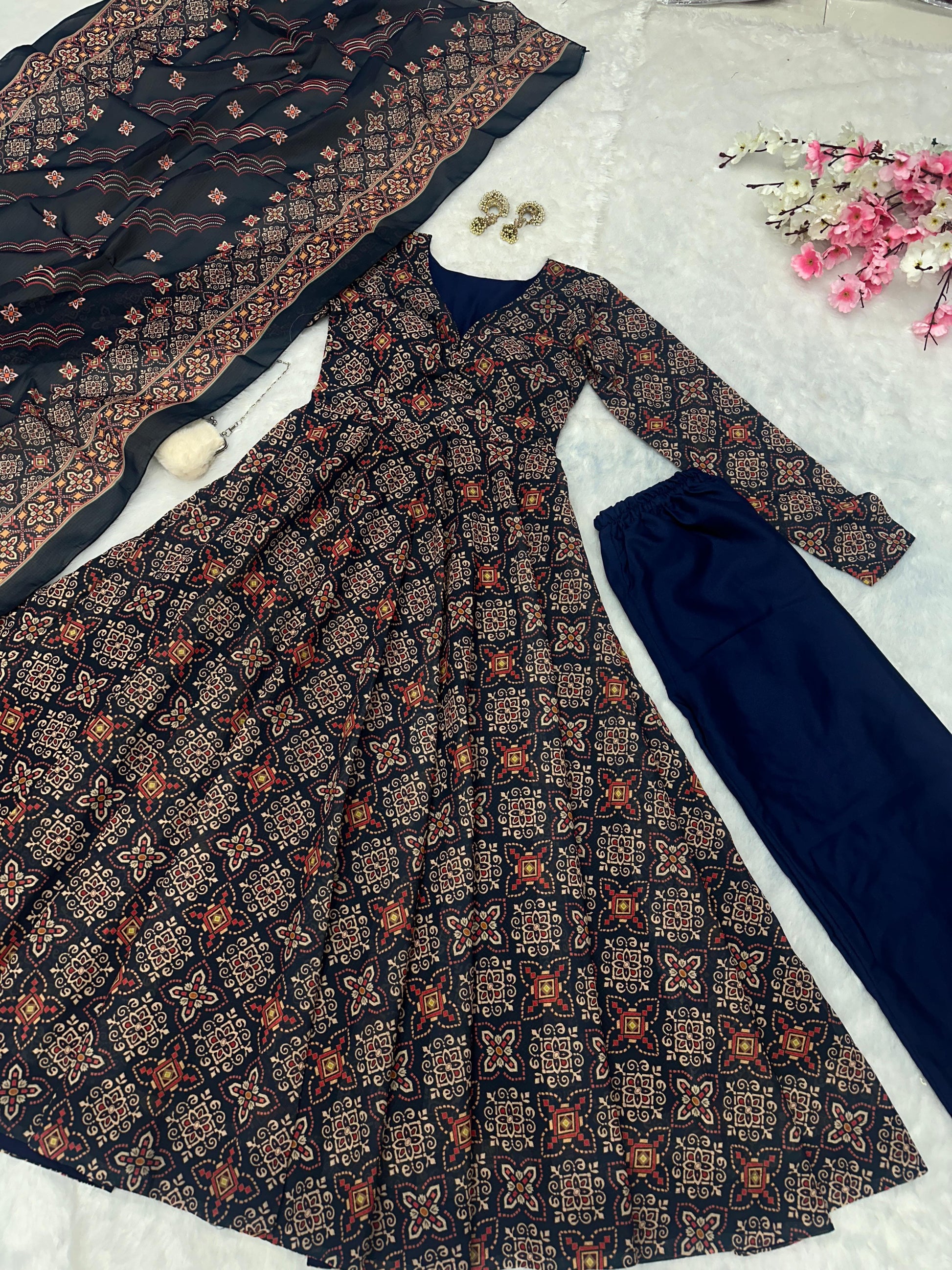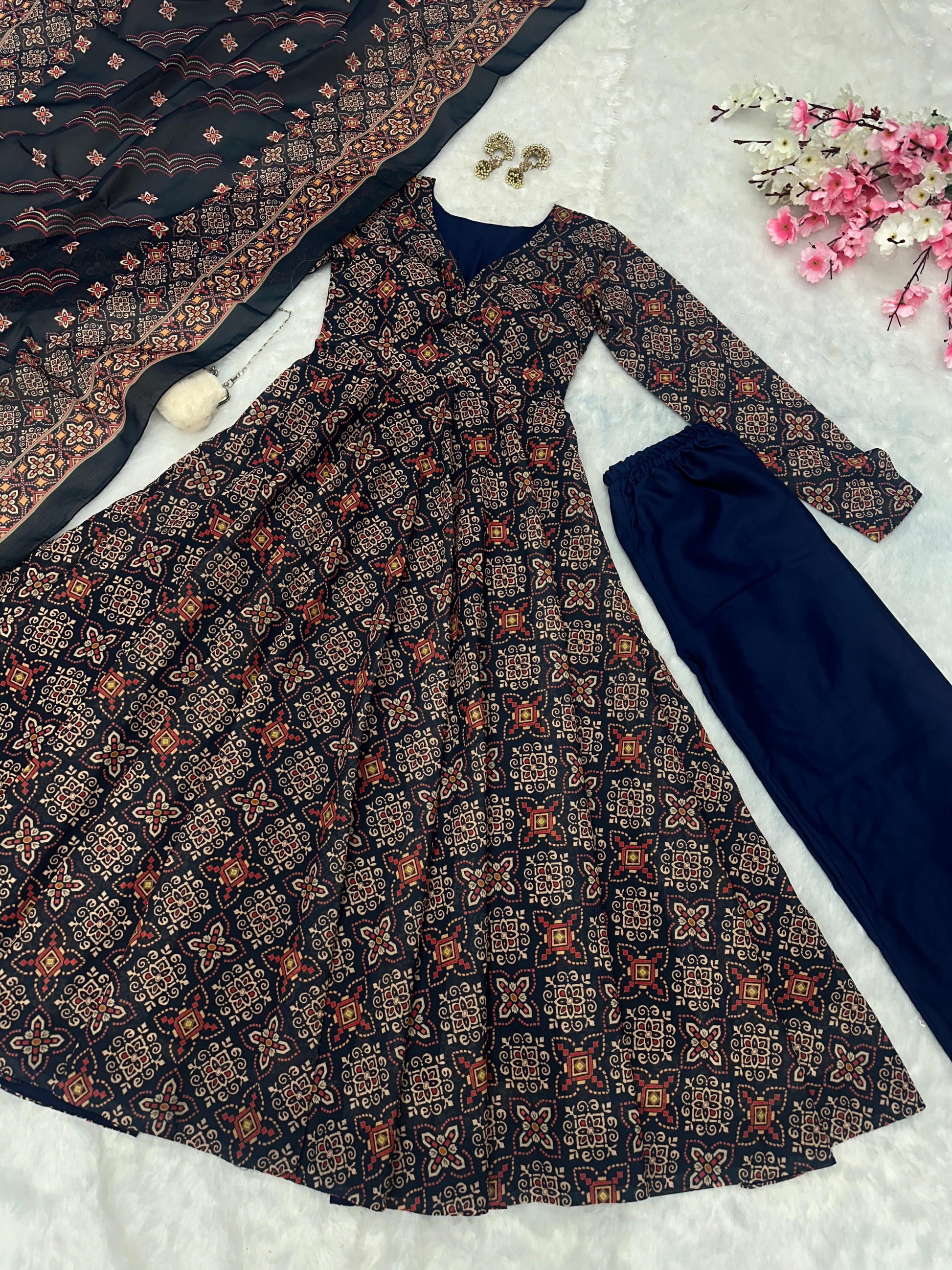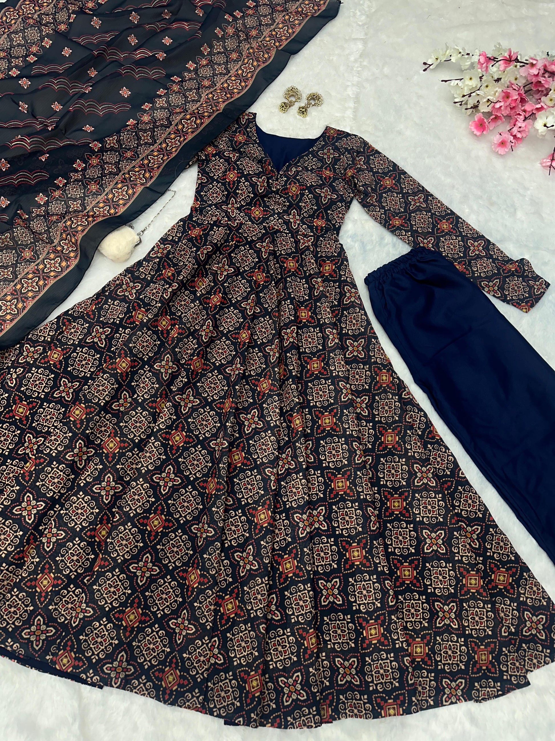 Wedding Wear Black Color Pure Soft Cotton Printed Anarkali Palazzo Suit