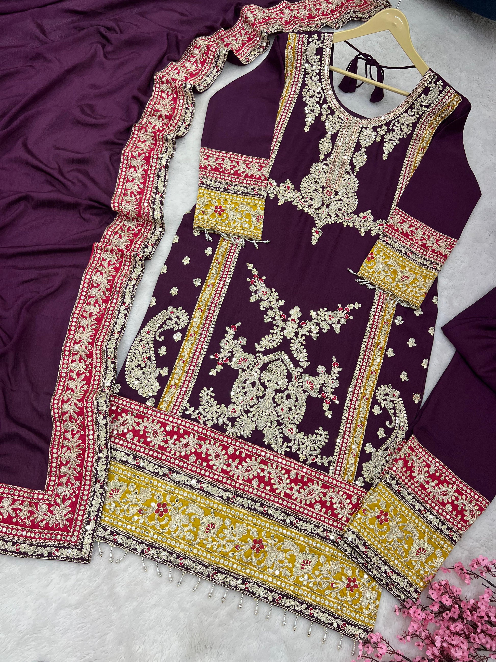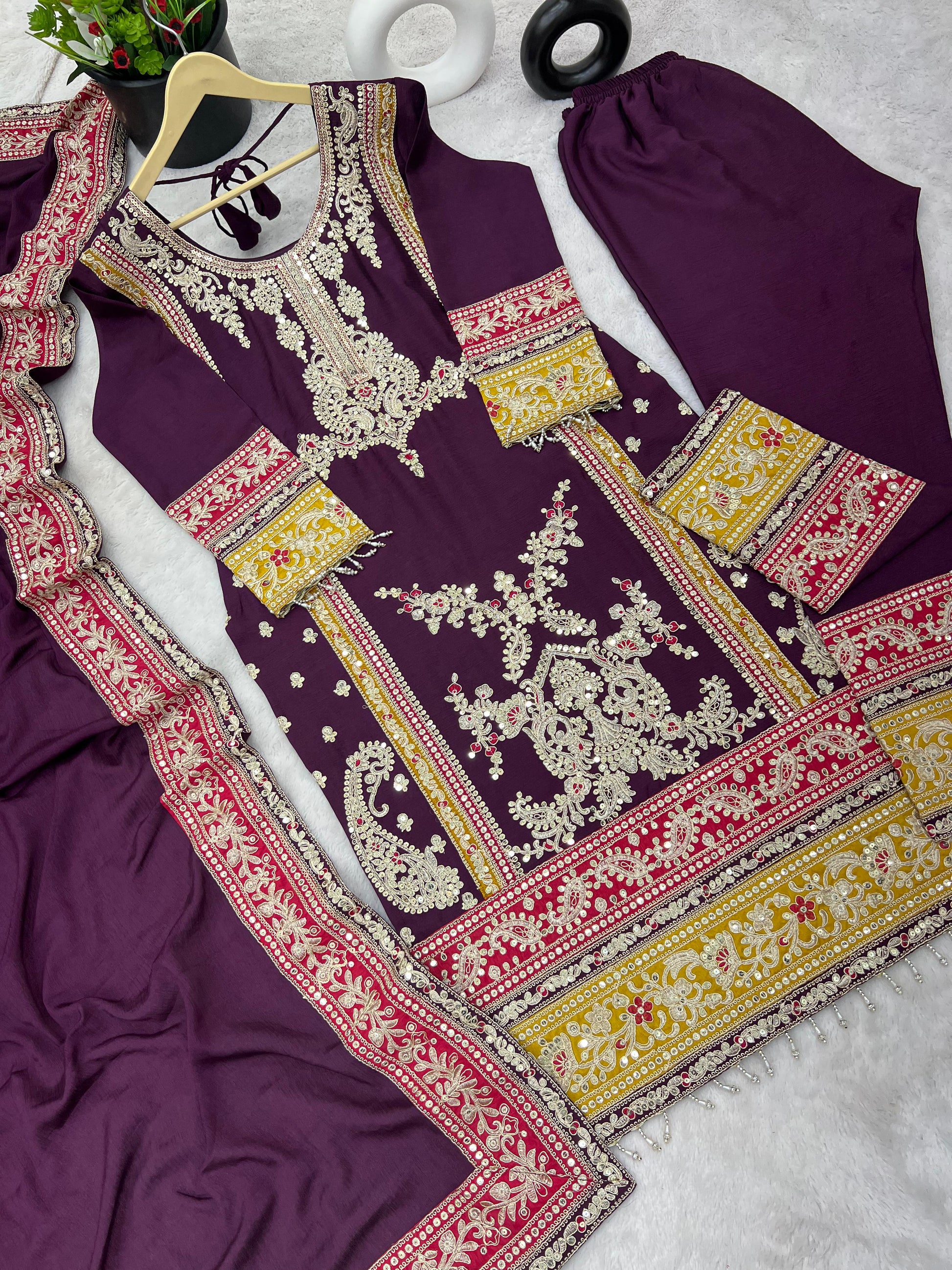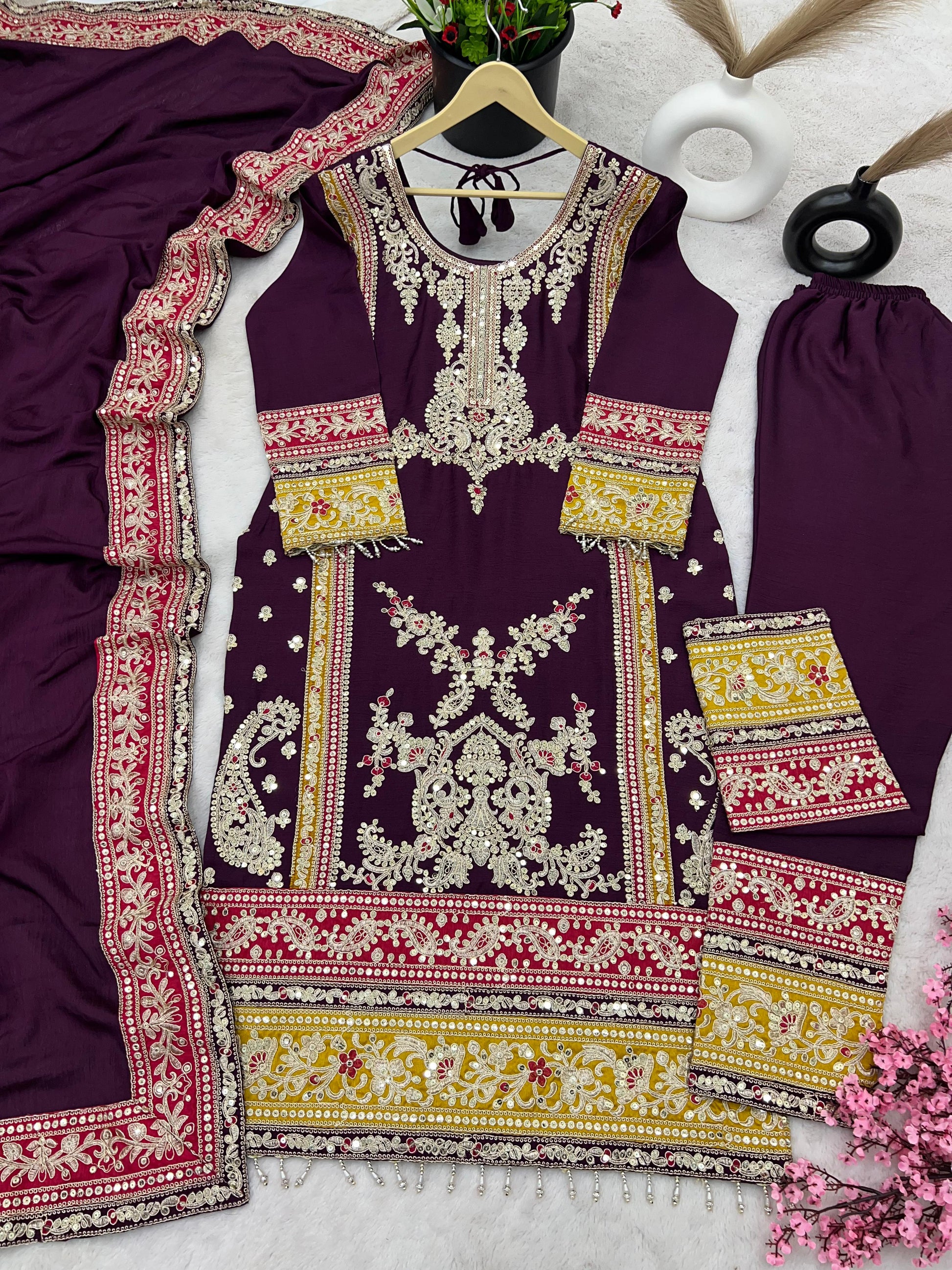 Wine Salwar Suit With Beautiful Sequence Embroidery Work