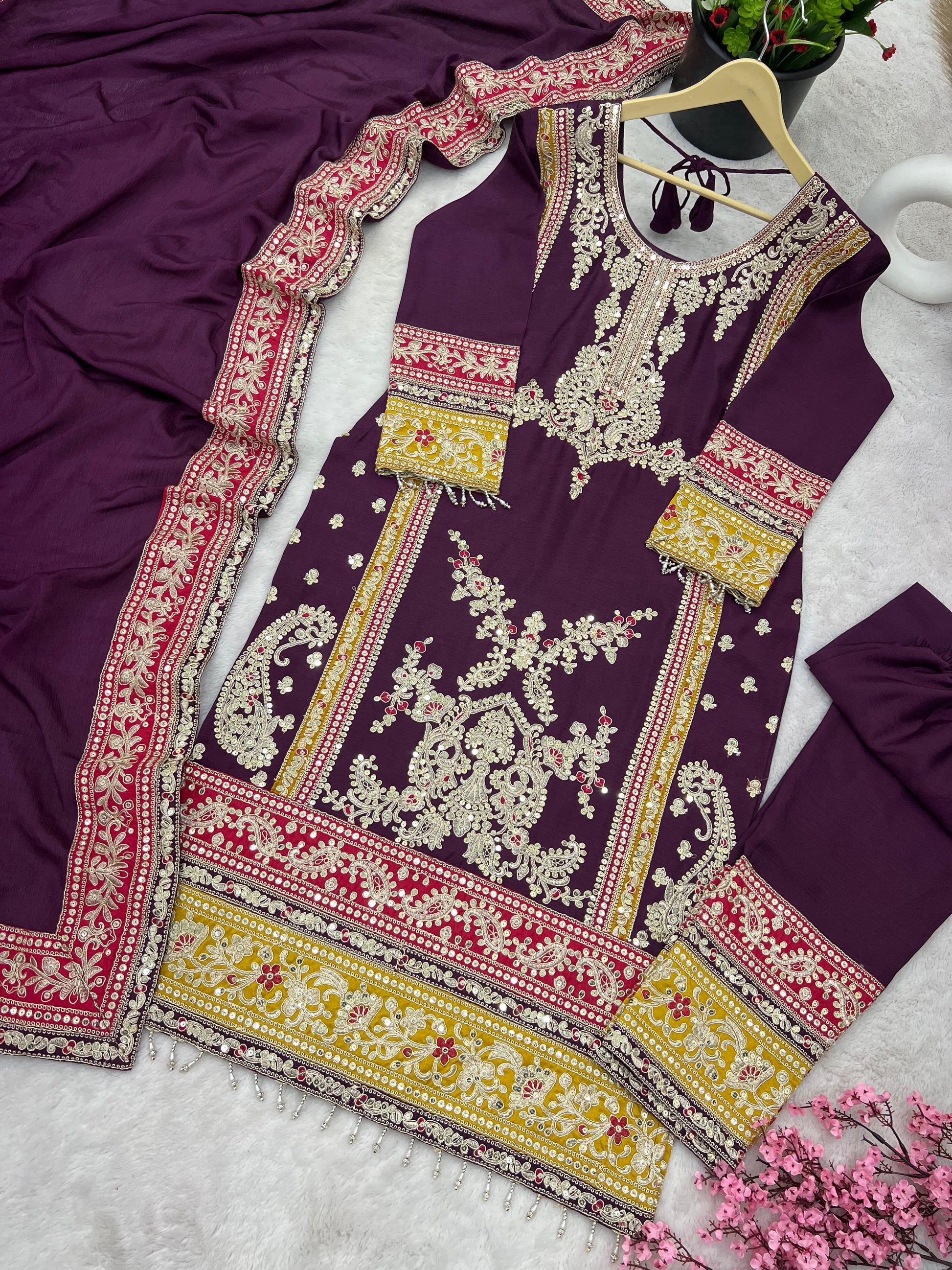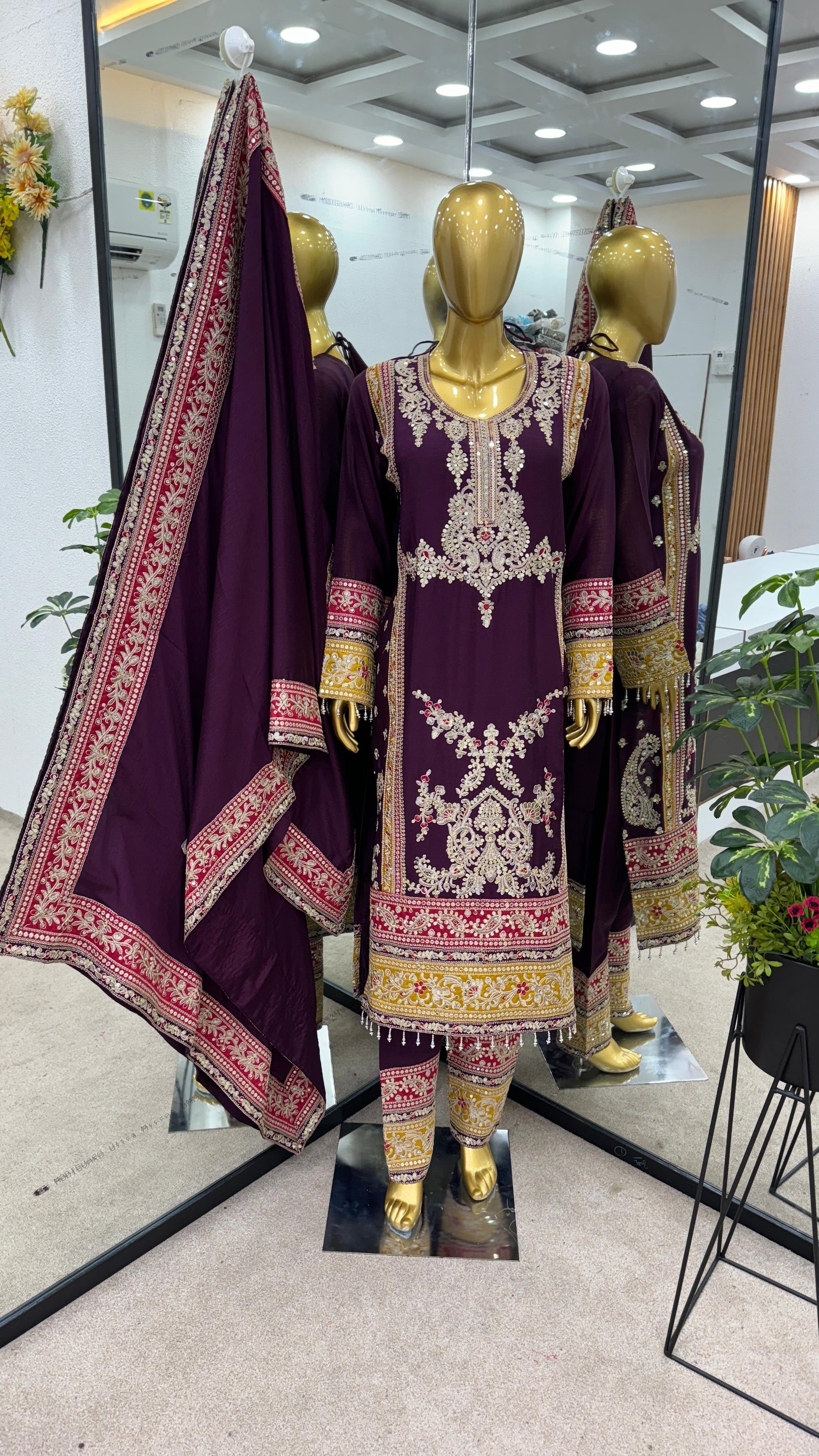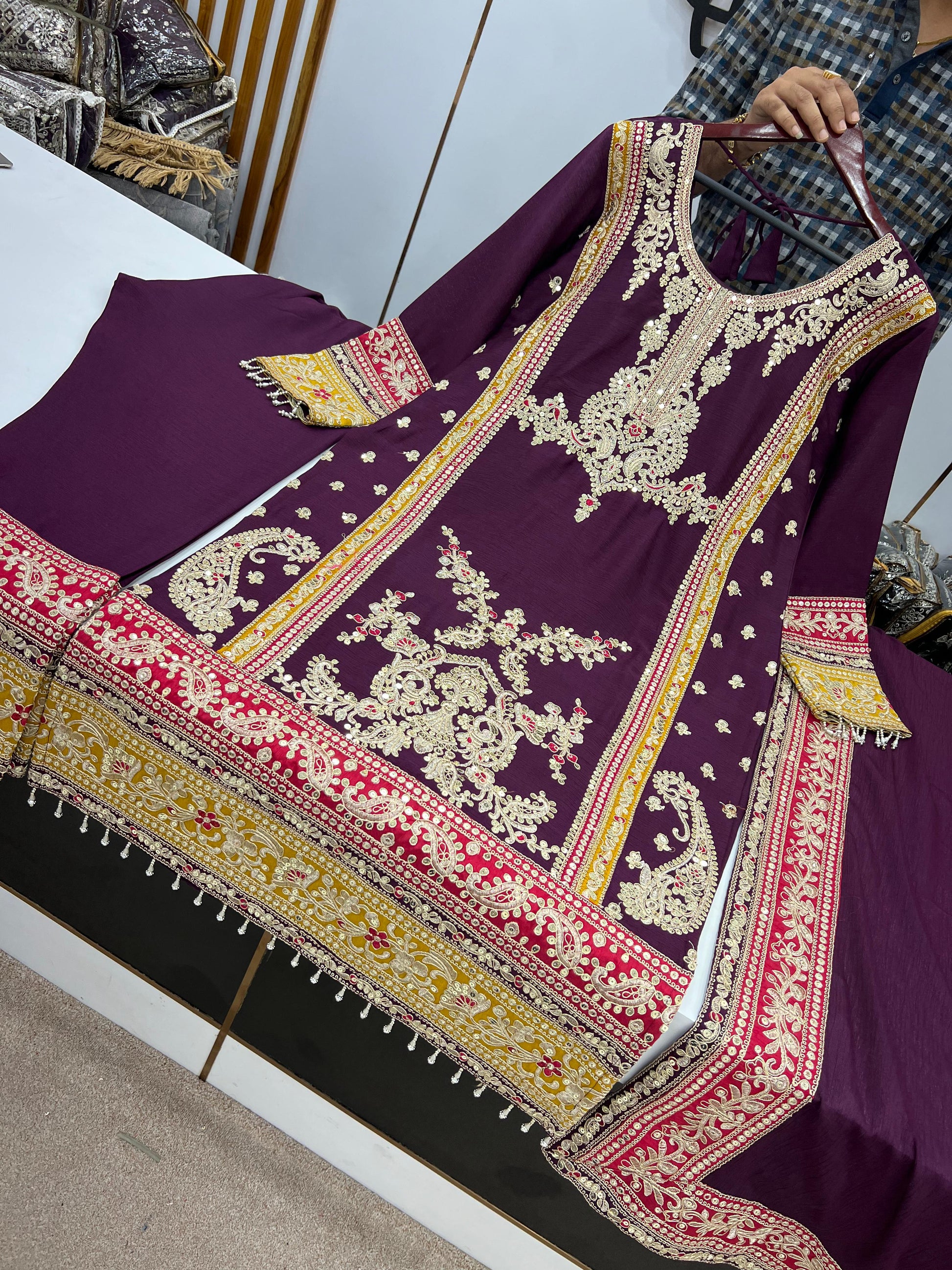 Wine Salwar Suit With Beautiful Sequence Embroidery Work