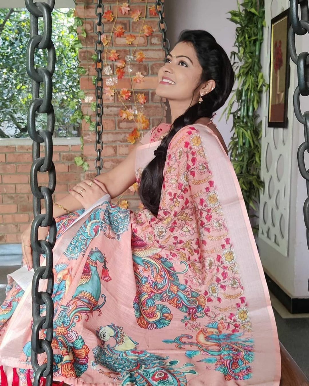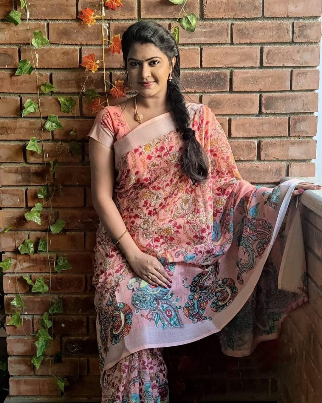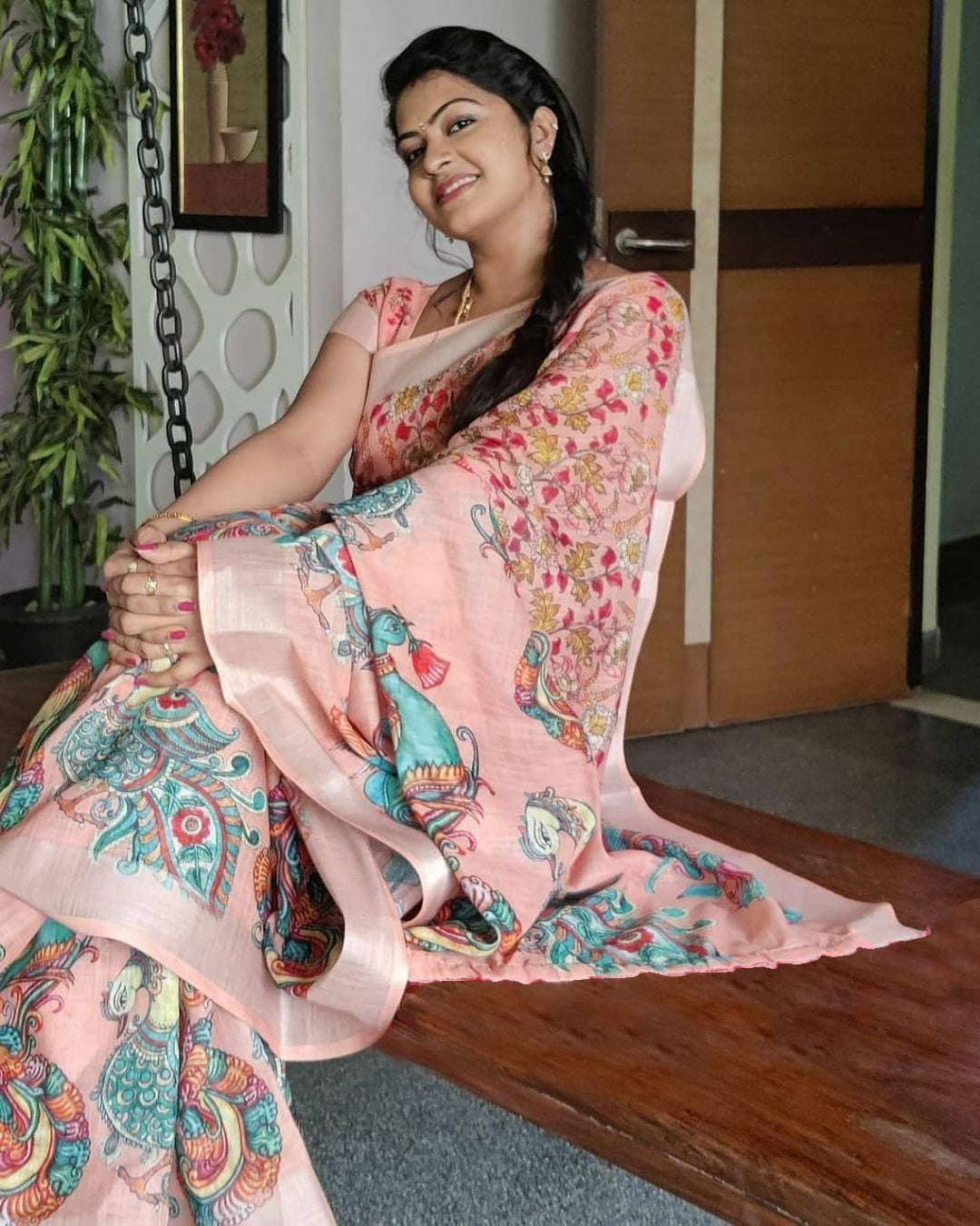Wonderful Baby Pink Color Color Pure Cotton Lilen With Digital Printed Designer Saree
