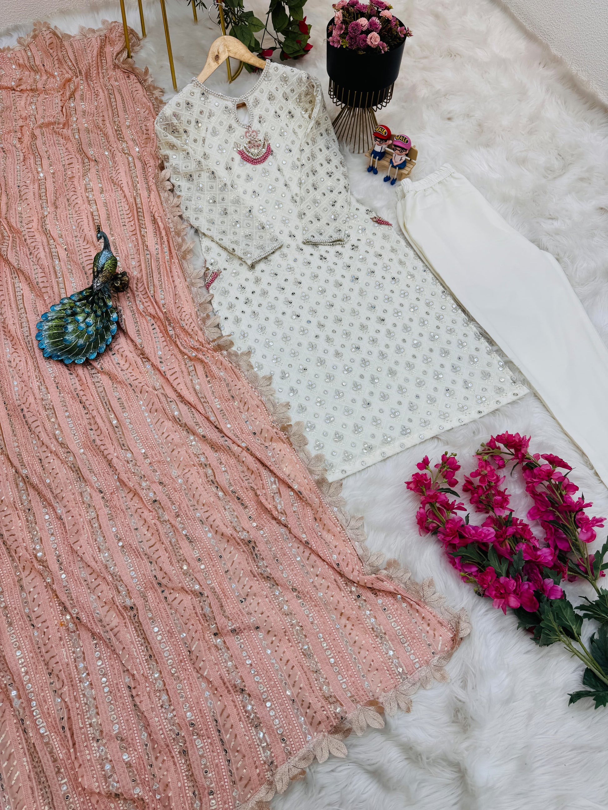 | Fabric | Faux Georgette Codding Embroidery Sequence Lace Work |