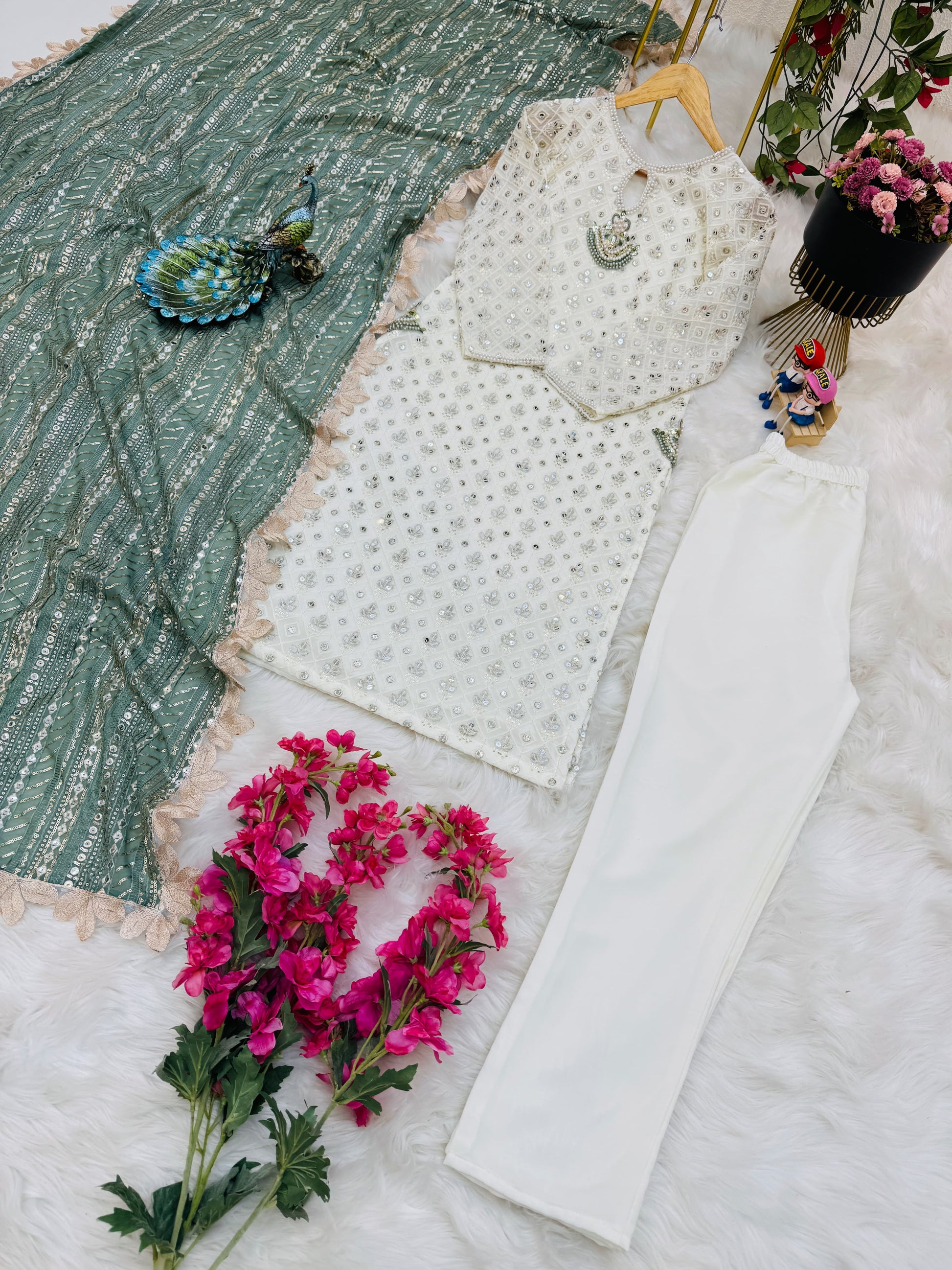 Wonderful Pista Color Thread Sequence Work Salwar Suit