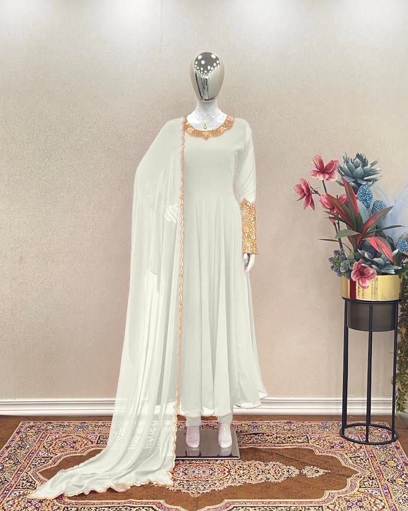 | Work | Embroidery 5 mm Sequence Work With Cut Work |