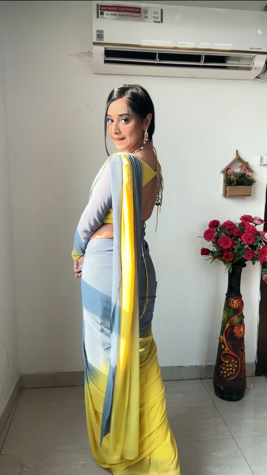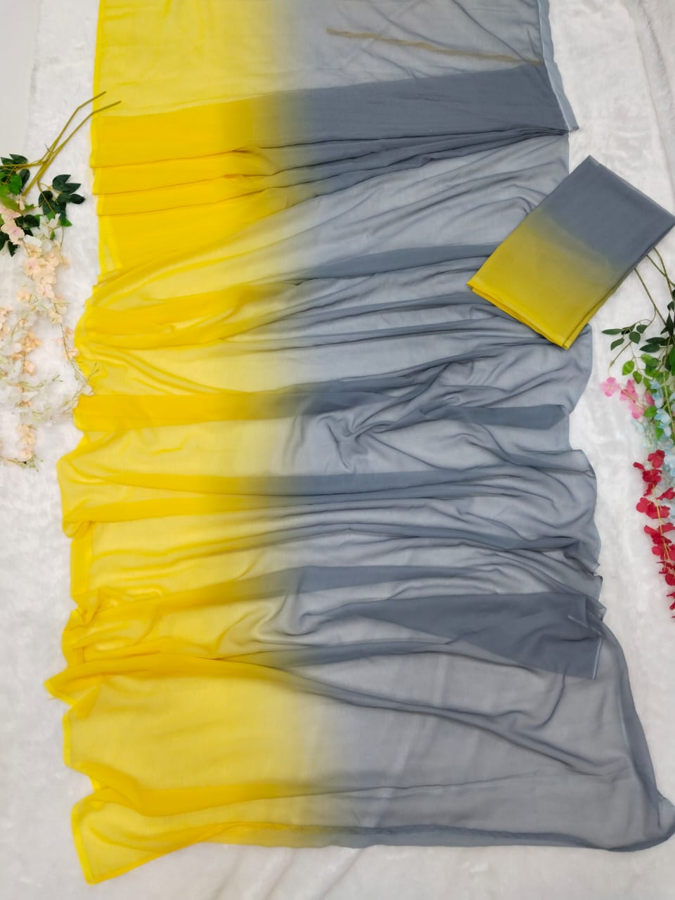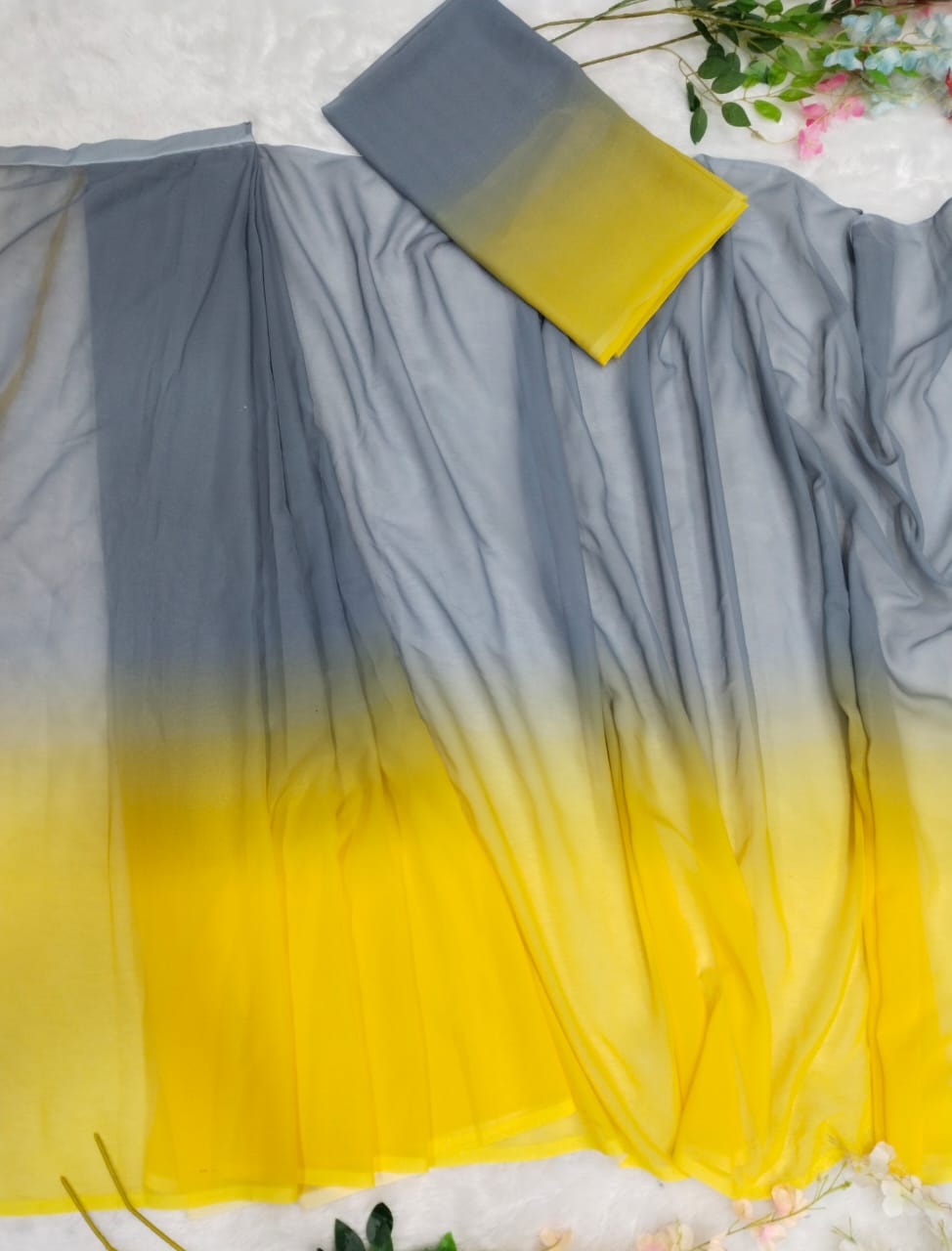 Yellow And Gray Double Shade Ready To Wear Saree
